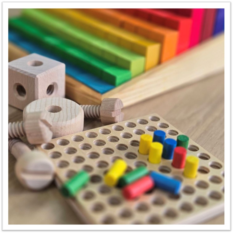目と手の協応、色や形の認識、大小の概念、物の分類や名前など、学習の基礎となる部分にスモールステップで取り組みます。